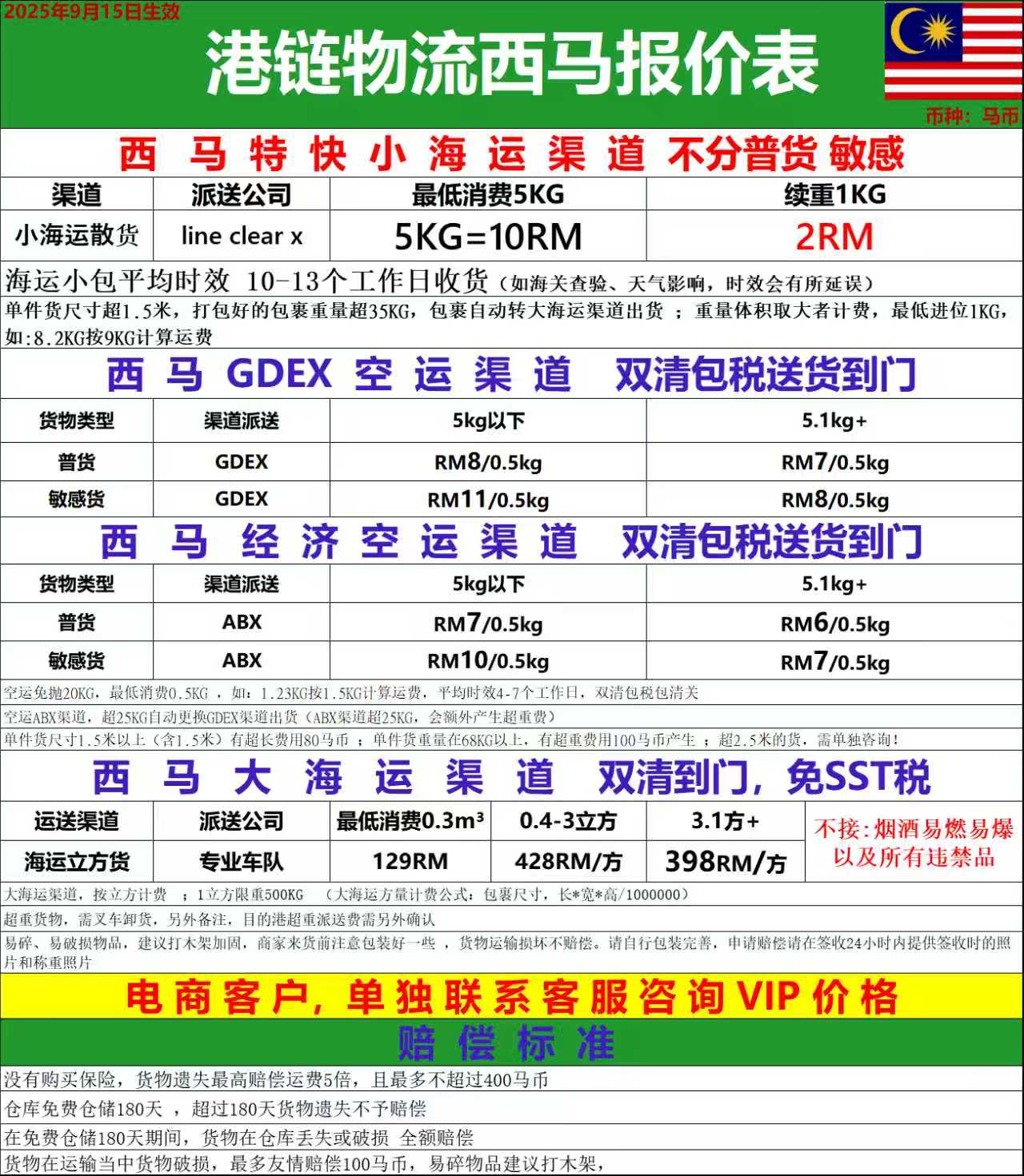 * 默认体积重与实重比较,取较重者计算运费,免抛/半抛优惠请参考报价说明。